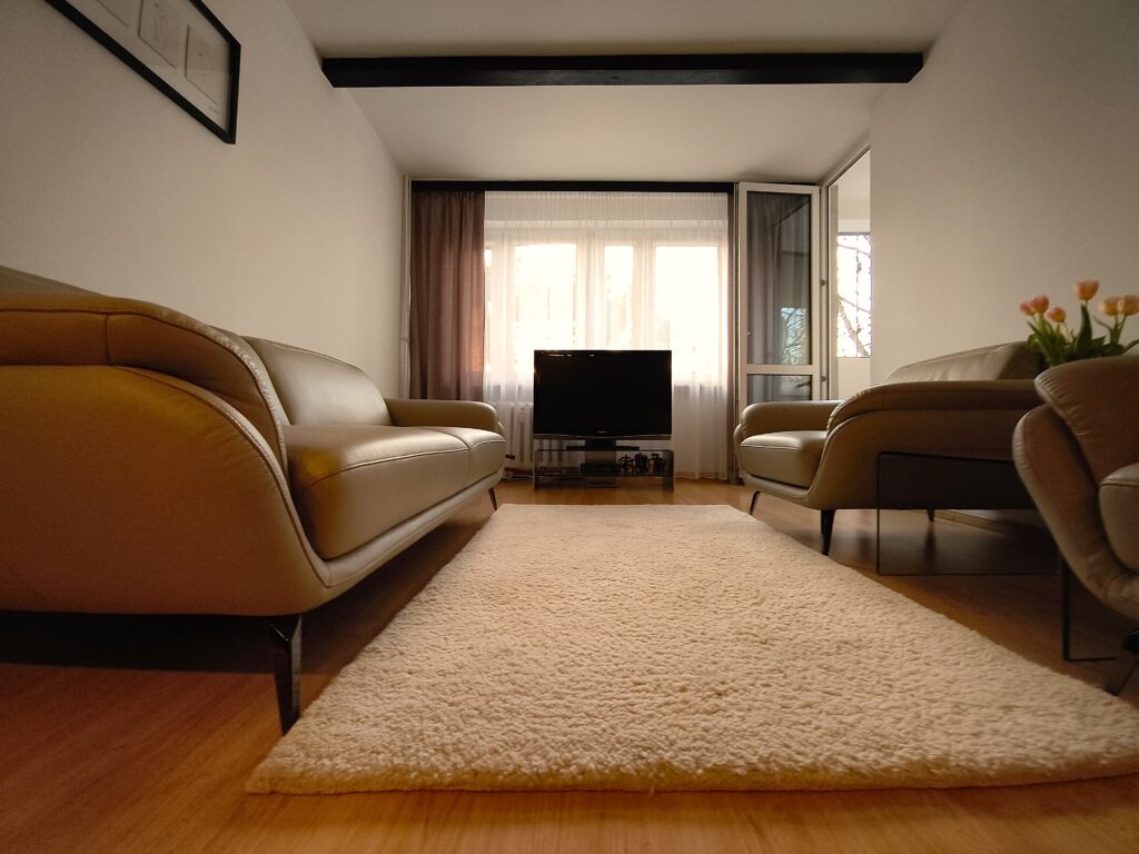 Mieszkanie jest jasne i słoneczne.