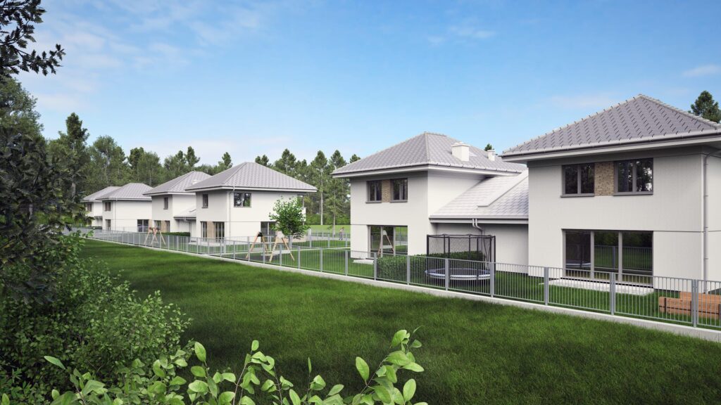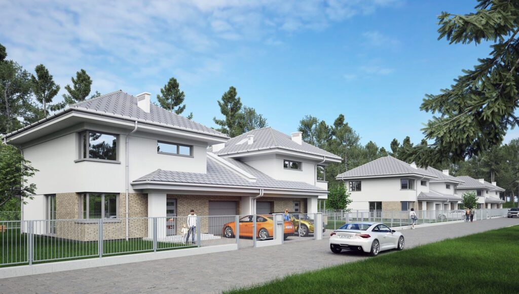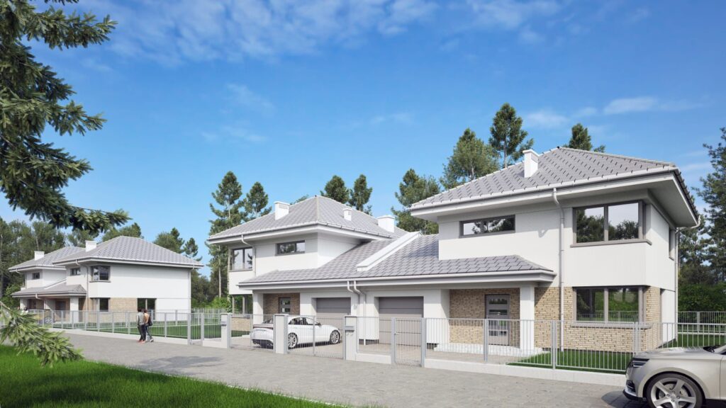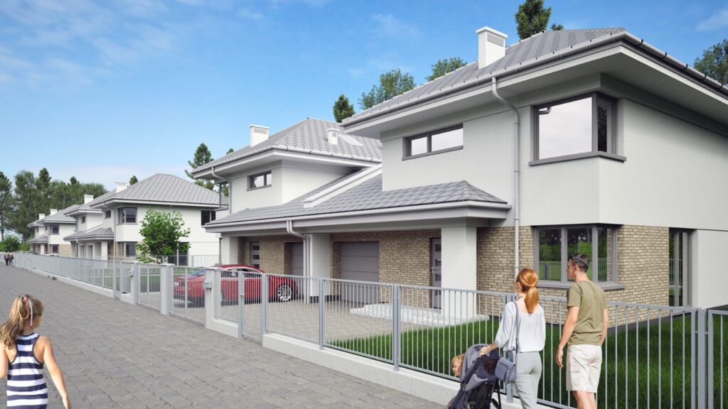 Domy w pełni oddzielone garażami. 500 m2 działki do każdego z domów.