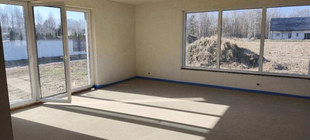 powierzchnia netto 138,79 m2 (dodatkowo możliwość adaptacji poddasza − 70 m2 powierzchni z niewielkimi skosami, strop oczywiście betonowy).