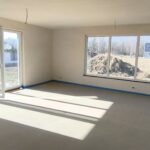piękny, duży, oświetlony salon z wyjściem na ogród,
